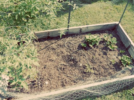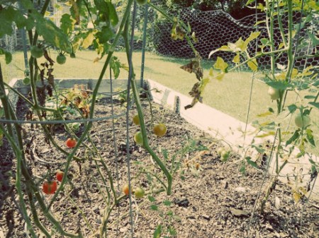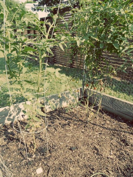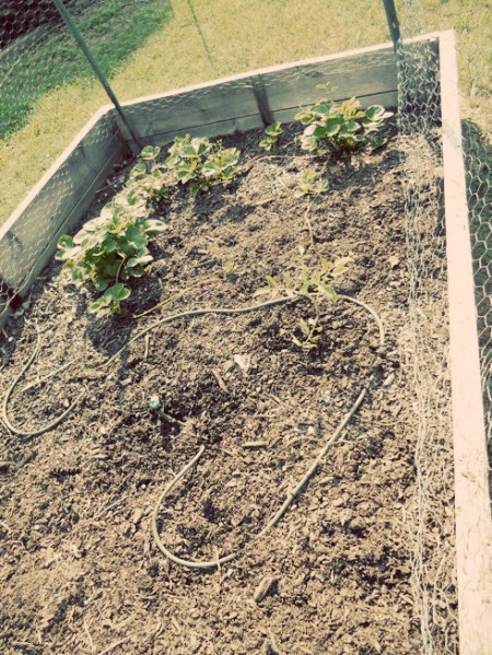 Between Jason’s tour schedule and our new foster parenting adventure, we kept our garden small this year. We had originally planned on adding two more 4’x8′ beds. I’m very glad we decided to wait until next year for that! We have two tomato plants on one end and strawberry plants on the other. We also had romaine lettuce and arugula before it got too hot.