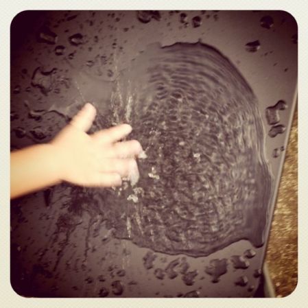 Splashing in puddles on the patio chairs.