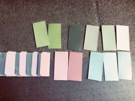 While we were there, we also looked at some paint swatches. These are all just ideas. Most are Martha Stewart Living and a few are Behr. Sherwin Williams colors are my favorite so we’ll probably get colors from there (plus there is a store right down the street from us) but anyway… top left: kids room; top center: Jason’s studio (which is going to look like a cave…); top and bottom right: my office/laundry room; bottom left: baby’s room. Precious wouldn’t stop eating the paint chip for Behr Raspberry Lemonade (fourth from the left on the bottom) so I’m pretty sure that’s her vote.