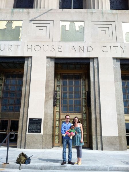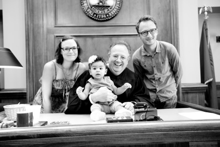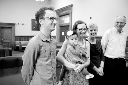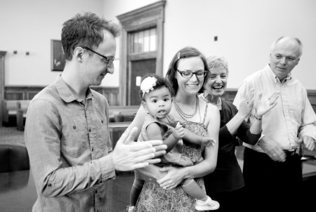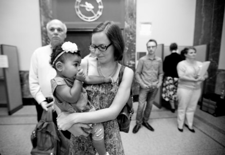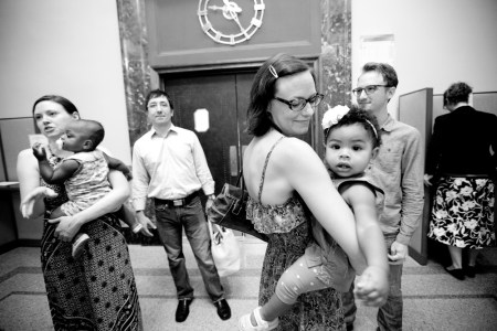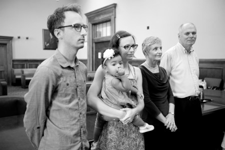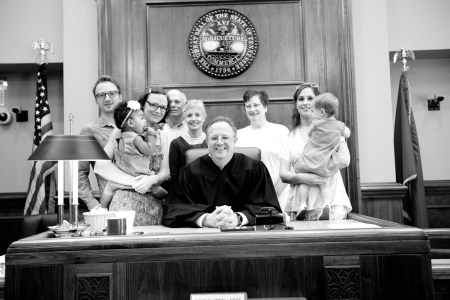 The actual adoption was a blur. We arrived at the courthouse at 9am Monday morning—Jason, me, my parents, his mom, our friends Leila and Jeremy, their boy Jaron. Waiting for us there was our photographer Beth Rose with her daughter, our sister-in-law Ginger, our niece Eliza, and our attorney Jennifer. We were the second hearing on the docket.