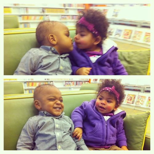 Tsk tsk tsk… Ali and her buddy Jaron (she calls him JeeJee) caught smooching in the library! Actually, I suggested the kiss because it was the only way to get them both to sit still for a second. JeeJee sure was feeling good about himself after that! They’re sweet buddies. I told his mom was can use these pictures for their wedding slideshow. 😉