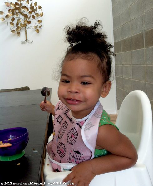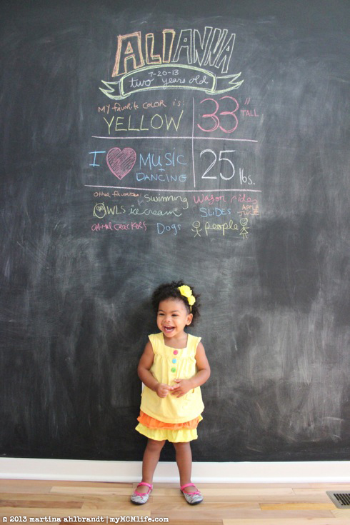 For my own records: At 2 years old, Ali is 33″ tall and 25 lbs. which puts her in the 25% percentile for both height and weight.