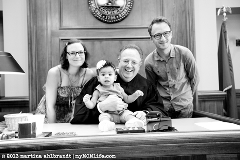 The morning after Buzz left, on Saturday August 3rd, Ali and I had breakfast and then I got out the tools and instructions for her crib. I showed her the illustration in the manual of the crib with sides and the crib with the side off like a day bed, ever after referred to as a big girl bed. She was game. It took me 15 minutes max. to take the crib side off and replace it with the side rail. Mostly she watched a show in the other room and came back just in time to “help” me tighten the last bolts. I moved it into place, made her bed and arranged her stuffed animals. She loved being able to climb right onto it all by herself. She immediately pretended to go to sleep. She posed for pictures. She was thrilled. Yay!
