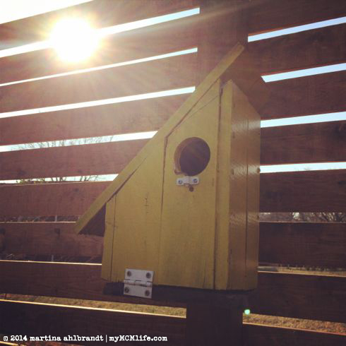 We had a flock of blue birds living in this house until recently when it fell out of a tree. (I think it was vacated before it fell.) It’s now cleaned out, relocated and waiting for it’s next tenants.