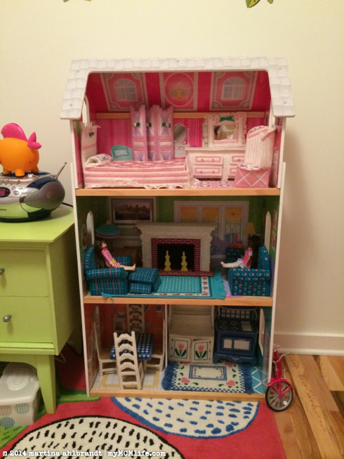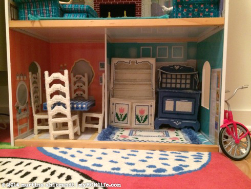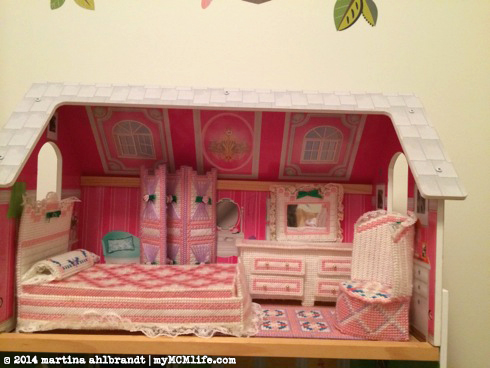 When I was a child my Granny made me a large set of furniture for my Barbie house. I posted about it a few years ago and it’s one of my most popular posts. Let me reiterate: I don’t have patterns for this furniture. It was made approximately 20 years ago by my grandmother who is no longer living. I’ve been hanging onto this for years waiting for just the right time and place to pass it down to my daughter. When Alianna got some Lotties for her birthday (our more age appropriate replacement for Barbie), I knew it was the right time. And then when my sister-in-law offered to pass on my niece’s Barbie house, I knew I had the right place to put it.