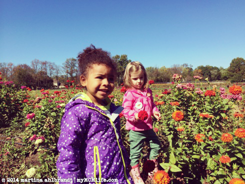 Alianna, my mom and I took a trip up to Philadelphia to visit and celebrate my niece Iris’ third birthday. Ali and I had not had a chance to meet my newest nephew Jack and niece Tahlia in person yet – they’re 9 and 8 months old respectively – so that was a big highlight for me. Ali’s highlight was playing with her cousin Iris and all of Iris’ toys. She also got to spend a morning playing with her cousin Eli. My brother and sister and I haven’t been together since last Christmas and I can’t remember we took a photo of the three of us. The morning before we flew home we went to a local farm with a pumpkin patch, hayride, fabulous muddy puddles, lots of farm animals and fields and fields of beautiful zinnias.