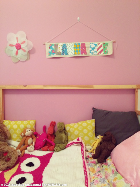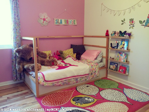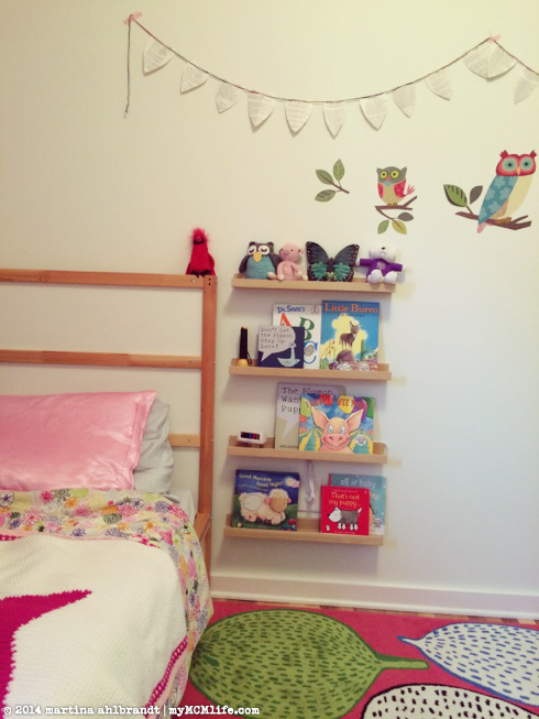 10/29/2014Alianna’s room has made the full transition from a nursery to a big girl room. In the past couple weeks we moved the twin IKEA Kura bed into her room. Eventually we’ll flip it over so she can have a low loft bed, which I know she’ll love. For now, she has no idea it does that. She does LOVE to hang and swing off the bar at the end of the bed. With the addition of the bed, I swapped her nightstand out with the IKEA Ribba book ledges we’ve had for years. They’re positioned to work with the bed in either position. We’re all loving the new bed and she’s only fallen out once – yay! Her old dresser was a vintage find from a local antique store and was perfect size and height to use as a changing table. With baby Froggie on the way and since I took away Ali’s two drawer nightstand, it was time to get her a taller dresser. I went with the unfinished wood IKEA Tarva so I could customize the look for less money. I ended up building the whole thing myself (though Ali helped me with the drawers!) and doing all the painting and staining myself too. Usually when we do home projects Jason takes the lead. He’s more experienced and much more detail-oriented than me. He’s in a busy work season, though, so I’m pretty proud of myself for how this turned out. Ali was not crazy about the idea of a new dresser until the day she helped me build the drawers. Now that she’s personally invested, she’s very excited about it. In the upgrades to her room we also added a real curtain rod. When we moved in we bought a cheap tension rod to be used temporarily and almost two years later it kept falling down when she’d try to open the curtains. This room continues to be one of my favorites in our house.
