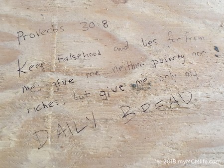When we built our last home in 2012, I wrote Bible verses on the studs throughout the house that were specific to each room and how we expected to use the room. I continue to be amazed at how many people were touched by the post I wrote about it and the verses I shared. Approximately 2/3 of our current home has exposed subfloors. I decided it was time to cover our home in the Word of God (and a few song lyrics, too) before the new floors go in later this month. I wanted to share my list of verses again with any of you who might be inspired to do the same at your house.