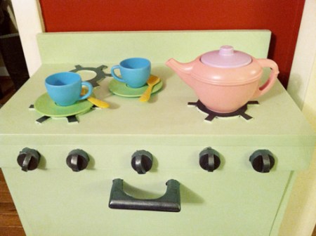 We gave Ali the stove on her adoption day. I realize she’s still a bit too small for it but she’ll be big enough eventually. I tried to make some kind of sentimental connection about her importance in our family and a kitchen’s importance in the home. Or something like that. Really, I just found a DIY project I couldn’t pass up and I had an occasion that called for a gift.