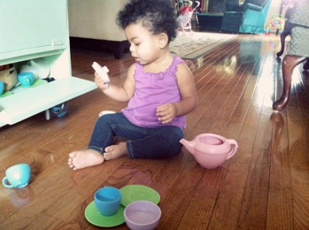 Thankfully, Ali redeemed my craziness the next day and indulged me in several tea parties. She seriously played with these toys for hours. She’s not totally getting the tea concept yet but she loves to bite the saucers and take the lids off the tea pot and sugar bowl.