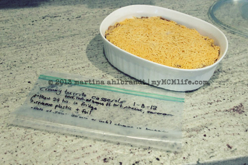 This is Creamy Burrito Casserole round 2 – just after taking it out of the freezer to thaw. The recipe made enough for 2 good size casseroles.