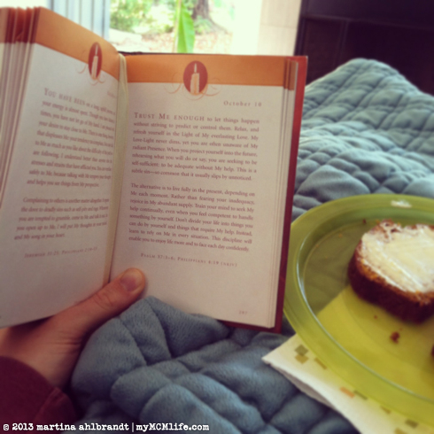 Lots of time was spent reading and praying, usually right in this spot on the couch in the morning before anyone else is up.