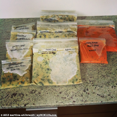 I spent half of a Saturday cooking several gallons of soup and stocking it in the freezer.