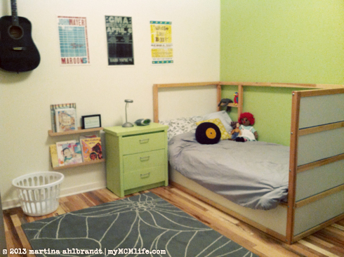 Then I rearranged the next kid’s room a little bit. This bed seems to only work in this one spot in this room and it kind of drives me nuts. I’m thinking I’ll eventually move it into Ali’s room and get some regular bunk beds that can be switched into twin beds for maximum flexibility.