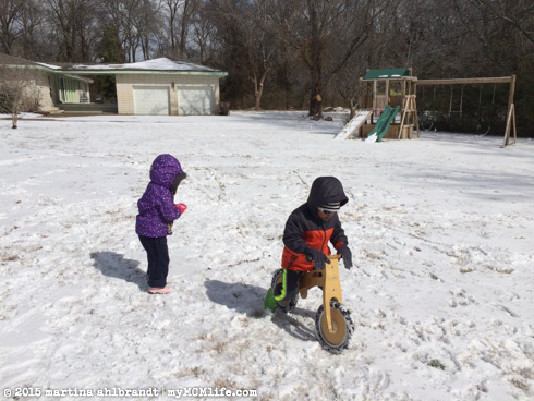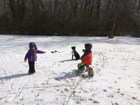 She could have stayed out much longer but I was worn out! Our buddy Jaron lives right around the corner and his mom was under the weather so I took Ali over to play with him. I lasted 45 minutes until my toes were frozen and it was time to head home. As much as I despise this weather and want to pack up and move to Florida, I really did enjoy watching Ali playing in it.
