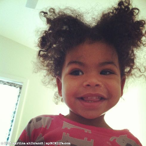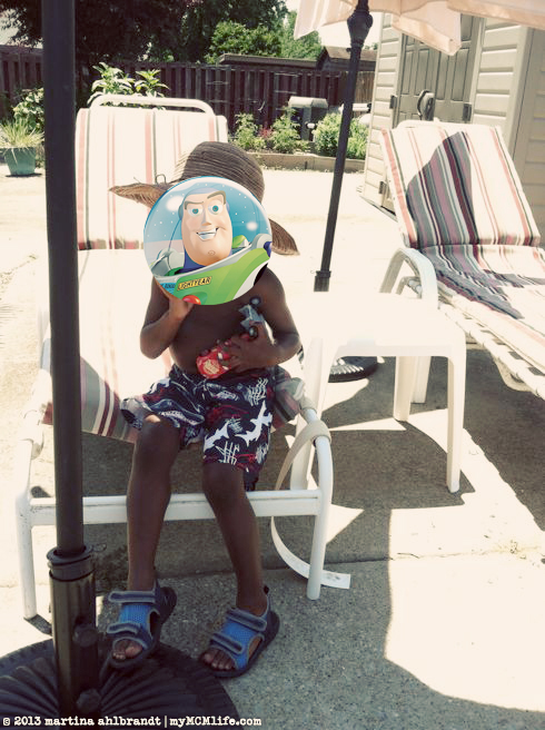 Saturday morning our original plan for a visit with his mom had to change last minute because the splash park we were going to meet at was closed. Like Ali’s post-pigtails bed head?