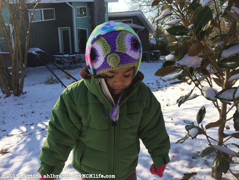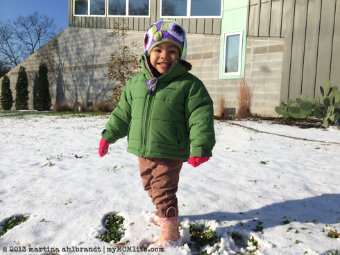 12/24/2013I’m not a fan of snow and cold—I’m still bitter from all those years living in the snow belt in NW Pennsylvania—but who could resist the joy and wonder of a toddler exploring the freshly fallen snow? This stuff is pretty rare down in Nashville so I bundled her up and we headed out to play before breakfast.