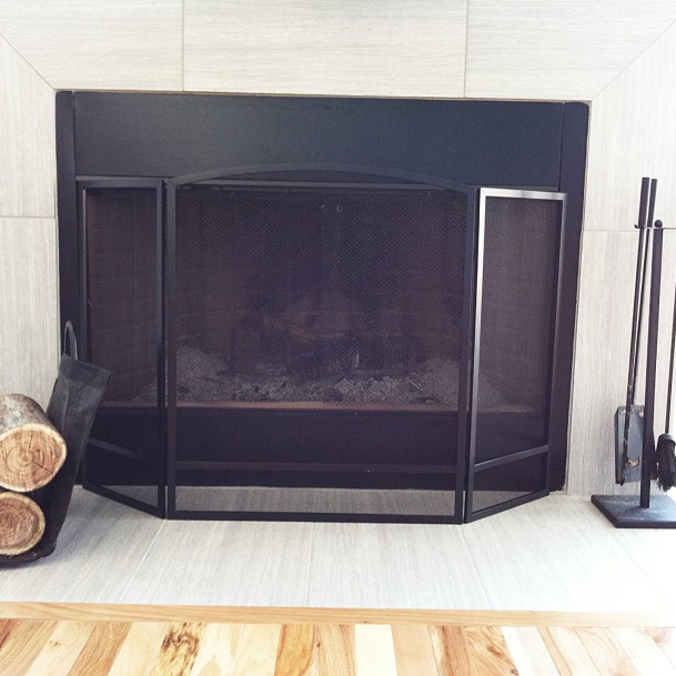 We got our fireplace screen in the mail on Wednesday. (I ordered this one.) It’s fairly lightweight but has enough catch against our ceramic tile that it won’t budge easily. It looks better than we expected. All in all its a very silly purchase for home safety but whatever. If we have a fire roaring in the fireplace and kid accidentally lunges toward it, this should save them.