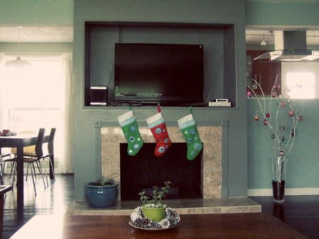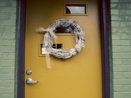 Our neighbors on either side have icicles draped across the front of their ranches. I’m afraid this wreath looks a bit Grinch-y in comparison. I’m thinking of lining the big front windows with white lights from the inside (if I can find some working strands.)