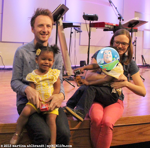 Sunday we spent the morning at church. Jason played guitar in the worship band. I photographed the baby dedication portion of the service. The kids had a good time in the nursery. They wore the new matching clothes from Buzz’s mom and I was really hoping we could get a nice photo of the four of us. Did not happen. One of the four was not cooperative…