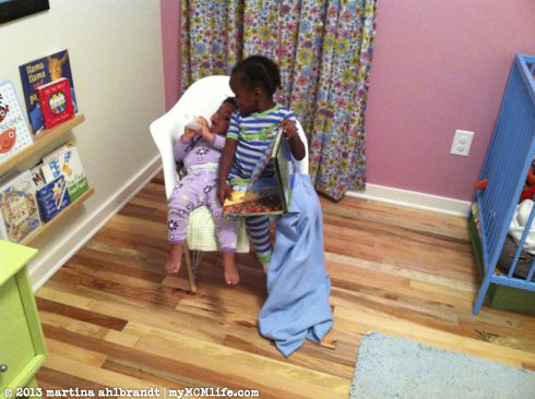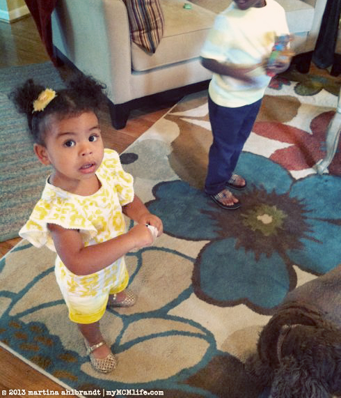 We were really hoping for the transition to happen on Friday but I’m trying to be positive. There are some benefits to a gradual transition and it gives us a lot of opportunities to explain what’s going to happen to Ali and Buzz. Buzz’s mom said that while they were at the zoo on Saturday he took off running after a stroller that he thought was ours, looking for Ali. He was disappointed to find out it wasn’t her. These two are going to miss each other a lot.