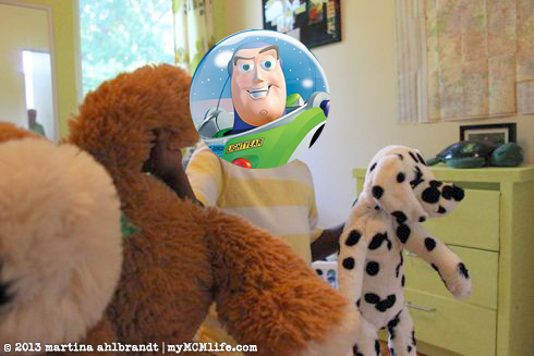 I guess it doesn’t have quite the same affect with the Buzz head on there. In the one below he’s looking straight at me with a sweet smile and I love the way Ali and Jason are looking at each other.