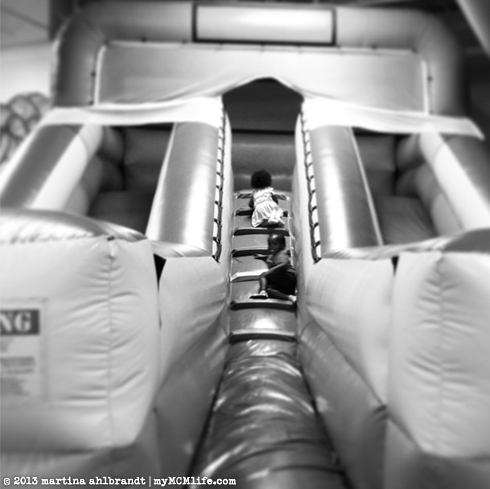 Buzz has figured out that he’s been seeing his mom more this week and now every time we leave the house he says, “Mahi?” If the answer is not “Yes, here she is right now” he gets upset. Last evening was probably our last “official” visit with her. We met at Monkey Joe’s—a warehouse full of bounce houses, arcade games and junk food. He and Ali both had fun bouncing, climbing and sliding. Buzz (surprisingly to me) really seems to understand that he’ll be going back with his mom soon (Fri hopefully) and the goodbyes are getting harder…more angry. We spent the first 10 min of the drive home screaming “No! I’m mad! I want Ma!” Good using your words, Buddy! Ali and I screamed too for moral support. And then, he was fine. A few minutes a later he said, “A Ma, I’m sorry.”