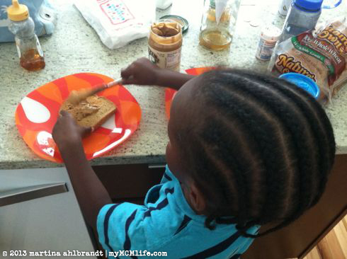 It’s been three months since a shy and wide-eyed little boy showed up in our kitchen at 1am on a rainy Friday night. When I look back at the pictures from his first weekend with us my first thought it, wow, he looks haggard! Poor guy was exhausted. The first week he had a hard time sleeping and would get out of bed, turn on the light, pace around, sometimes curl up with a blanket on the floor or in the chair in his room, dropping books and sippy cups and generally keeping everyone awake. By the end of his first week he was sleeping in his bed with the light off and it was no small victory. Several times in the weeks to follow he would get frightened by a sound a night, jump out of bed, put his shoes and jacket on and get ready to haul out of there. I’m happy to say that hasn’t happened in a long time. He’s even been fairly good about staying in his room in the morning until his Ok To Wake clock lights up. (More about that another time.)