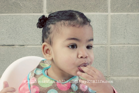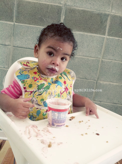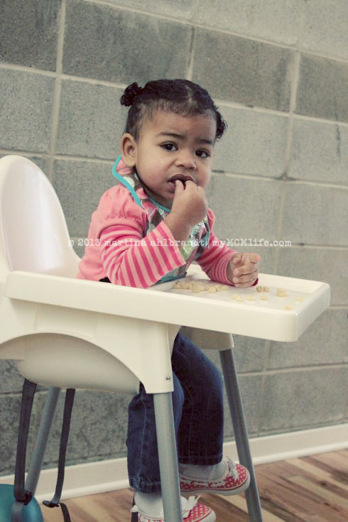 It seems obnoxious to say, “Good job, Ali! You’re doing a great job feeding yourself! Wow, look at you! Can you put that banana in your mouth? [As she dangles it over the floor…] Great job putting the banana in your mouth! What a good eater!”