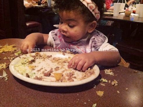 Above: Messing but she polished off a whole plate of food at our favorite Mexican restaurant!