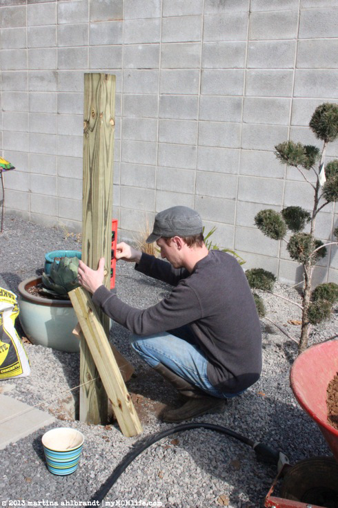 Another 2×4 was attached to the concrete block wall of the courtyard. Everything went smoothly with this one so I didn’t have time to take any photos.