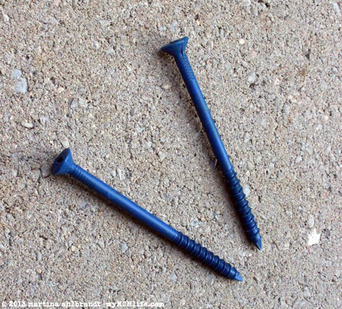 Drilling screws into concrete is not easy! We used these pretty blue concrete screws.