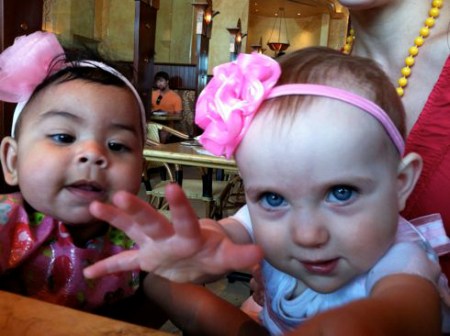 I had every intention of getting a photo of the three of us all dressed up for church on Easter…but it just didn’t happen. After church, we had lunch at Cheesecake factory with both sets of parents plus Jason’s brother Dan, our sister-in-law Ginger and Precious’ cousin Eliza.