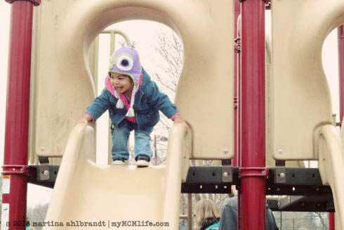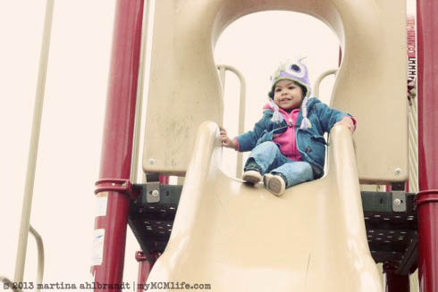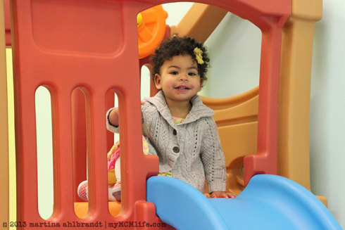 Ali got the whole nursery to herself for a while. She loves the slide, of course.