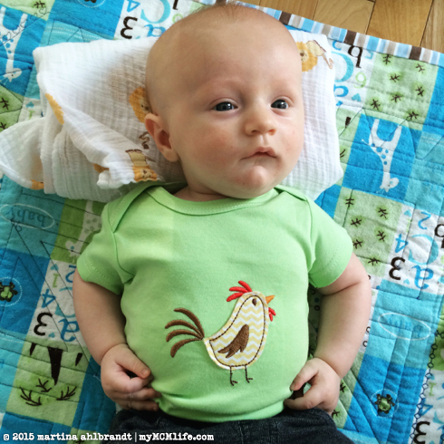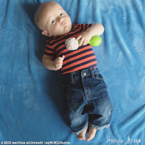 Stats: Off the charts for height at 32.5″ and in the 85-90th percentile for weight at 24.3 lbs. Wearing size 5 shoes and 18m clothes. He’s almost exactly the size Alianna was on her SECOND birthday!