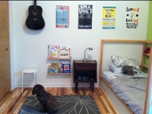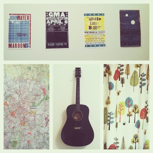 As I was going through our art collection one day, I decided this room would be a nice place to display our Hatch Show Print posters. (Hatch is a historic letterpress print shop in downtown Nashville that’s famous for their concert posters.) Jason wanted to throw my old acoustic guitar away but I saved it, thinking again about older kids.