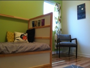 When I started pulling together the bedroom for our next kids, the ones who will join us through foster care, I really didn’t have a theme in mind. I was just trying to use what we had. The woodland friends curtain was from the kids room at our last house and what prompted me to use green for the accent wall color. The bedding was also from the previous room.