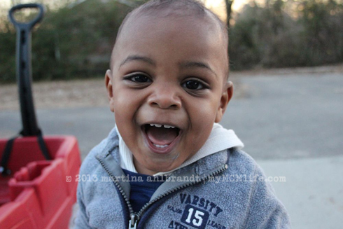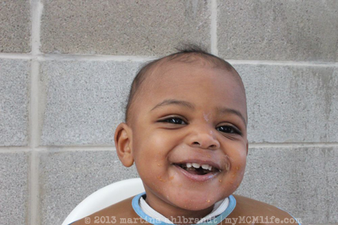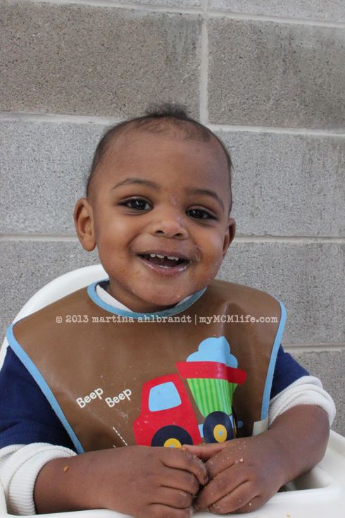This boy is a messy eater! Lord, have mercy…He’s so stinkin’ cute though. Smiles and laughs easily.
