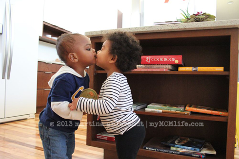 They two both get kissed a lot by their parents so they love to kiss each other as well. So cute!