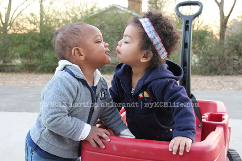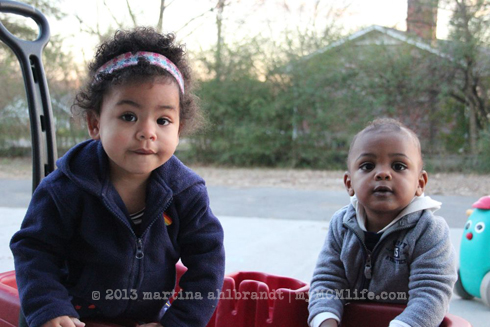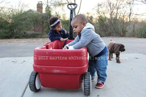 Oh, but not a foster placement. Boy did I confuse a few people on facebook! On the foster care front, our case worker is coming out on Thursday to check out our new home and move us back into open status, assuming all goes well. (GULP.) We could potentially start getting placement calls this weekend. (DOUBLE GULP.) Our home is as ready as it’s going to be, which made it easier for us to agree to watch our friends’ little boy Jaron for 4 days/nights with less than 24 hours notice. We joked that it would be good practice for life with two kids but dang… it was good practice! We learned a lot. It was almost as big of an adjustment as suddenly being parents to a toddler (our first placement). That was encouraging on two levels – 1. It was not as big of an adjustment. (We’re experienced now! Woot!) and 2. With our first major adjustment it got better after a week or two so I know that it would get better with two kids, also. The major difference, of course, is that we already knew and loved Jaron and his parents and we knew it would just be a few days. They also gave us a ton of directions on how to care for him, clothes, food, toiletries, etc. All of those things made it easier. It was still very stretching to have two almost-twin toddlers, and I know it was hard on little Jaron, too. One of the biggest things I learned: Being out numbered by munchins is no joke! It was much easier when Jason and I were both there to split the duties. He’d put one kid to bed, I’d put the other to bed. He’d carry one kid into the store, I’d carry the other. We both had at least 1 day where we were solo parenting both kiddos. Oy! But again, I know it would get better the longer we had to settle into a ruetine and get used to each other. Ali did really well sharing her parents. I hardly noticed any jealousy. There were a few periods when both kids wanted the one-on-one adult attention that they’re used to and I wasn’t able to meet both of their needs at once. They weren’t upset with each other but at one point while I was trying to warm up some leftovers for dinner (no way I was going to be able to cook!) and I had one kid clinging to each of my legs. It would have been comical if the shrieking/crying/whining wasn’t making me lose my mind. I even attempted to take a photo so I could laugh about it later but it don’t turn out. And I realized…What am I doing?! Just get the dang food in the microwave so I can sit on the floor and hug both kids at the same time.