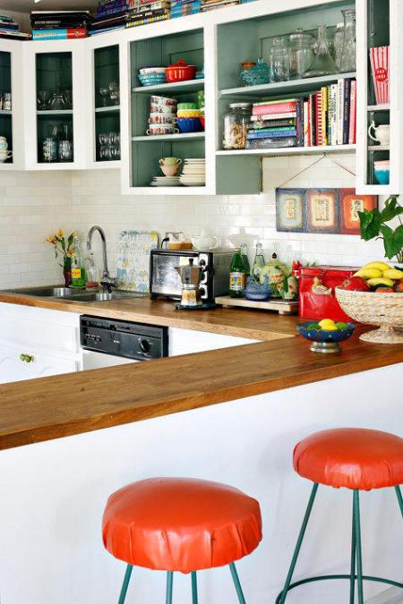 I was originally going to get silver stools but I decided we needed some color up in here. Our countertops extend out about 12″ there for casual conversation with friends while we’re cooking.