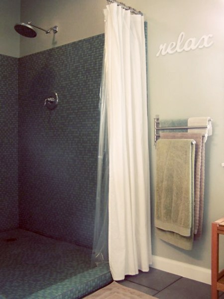 Ahhh … progress feels good! Next up we’ll be installing the second shower head and setting up the plumbing for when it will be connected to the water lines (later…) and finishing up the drywall. Once that is done and all patched up (all Jason here again) we can prime and paint. THEN tile the floors. (Not decided on or purchased yet.) THEN install the vanity. THEN install a sink. (Not decided on or purchased yet.)
