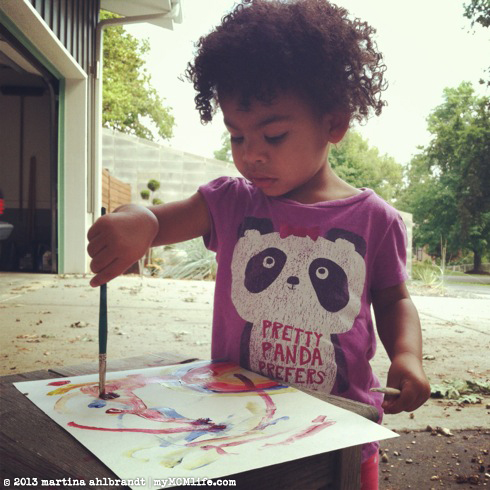 Part of the art of photography is composition—deciding what to include in the photo frame and what to leave out. Sometimes it’s done after the fact by cropping the photo. I do a lot of exclusion with the camera…changing my angle to avoid capturing the messy countertop or pile of shoes by the door or whatever it is. I also use Photoshop to edit my photos. Here’s an example from Instagram on Tuesday. I cropped this picture of Ali painting in the driveway to block out part of the garage that’s not so pretty and also to cut out our neighbor’s house for privacy. I do the same with all of my writing and sharing in general.