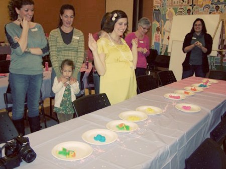 We played two games. The first one everyone had 5-10 minutes to sculpt a baby out of playdoh. That’s all the instructions I gave. Once everyone was done, I asked Ginger to select the most realistic, the funniest and the most hideous. The other game we played was baby shower bingo, where partiers mark off items on a pre-made bingo card as the mama is opening her gifts. I downloaded the bingo cards free from here.