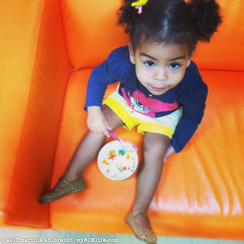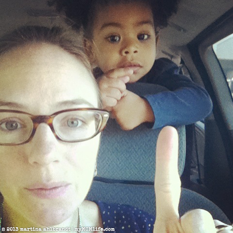 The three year old girl must be observing that often families match skin and hair colors. (Or has someone pointed it out to her?) We were in a fairly diverse setting but apparently transracial families and adoptive families are not common in her circles. I asked Ali later if she’s noticed that we don’t look alike—that she has brown skin and black curly hair and mommy has lighter skin—I stopped myself there because the look she was giving me said, No kidding. Why would or should we look alike? I might as well have been asking if she’s noticed the sky is blue and the grass is green. Then I realized that adoptive and transracial families are very common in our lives. It’s probably never crossed her might that we “should” look alike. There is nothing unusual about her family from her perspective at this point in her life.