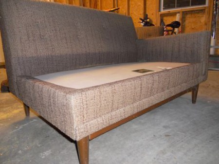OK, enough about disclaimers and what we learned. It was worth it! We have a brand new couch. Sort of. Actually, it’s a 1960 Harmony House for Sears, Roebuck & Co. But it’s like new with brand new foam cushions and new upholstery. I can’t wait to see this piece in our new living room.