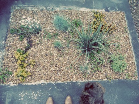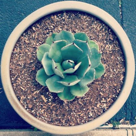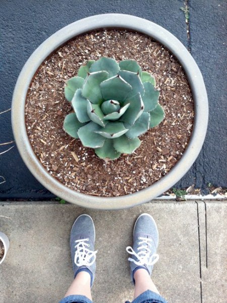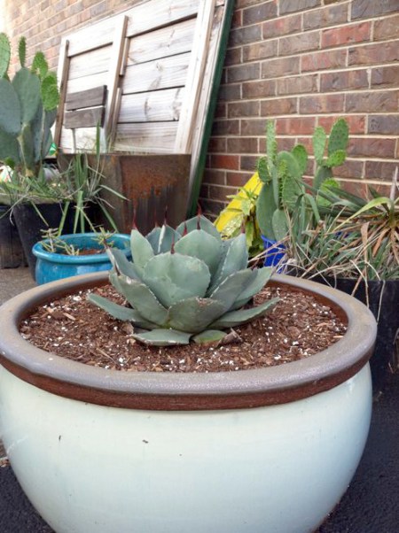 We recently bought a huuuuuuge round pot for this agave at Old Time Pottery. It’s happy.