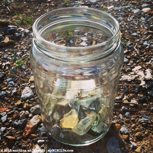 Walking around our property and picking up shards of glass (we started a jar for our collection about a month ago)…