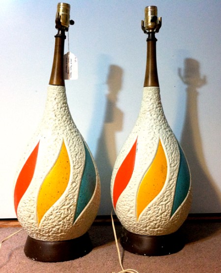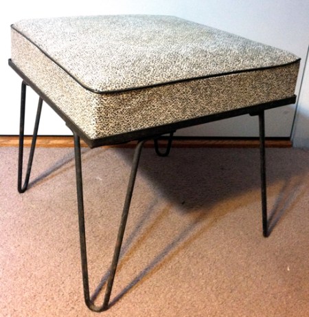 Jason and I did a little casual pickin’ this weekend. We stopped at a couple of yard sales on Saturday and at one of them scored a deal on a pair of vintage lamps and a small square footstool with hairpin legs. Jason may or may not have an addiction to buying mid-century lamps…