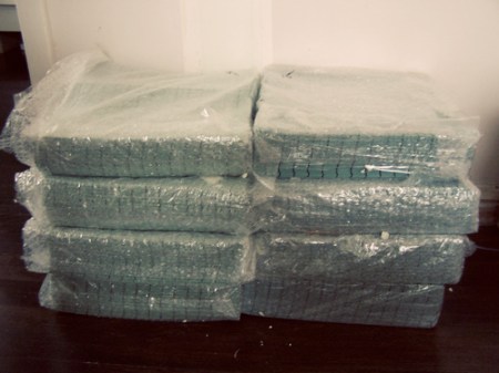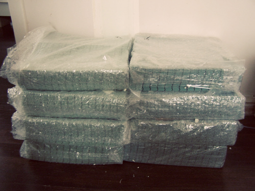 Let me just say that this process sucks. It takes a lot longer than I anticipated and the mesh is like sandpaper on my fingers! But I know it will all be worth it. Jason and I are really pleased with how it looks once the 2 colors are randomized together:
